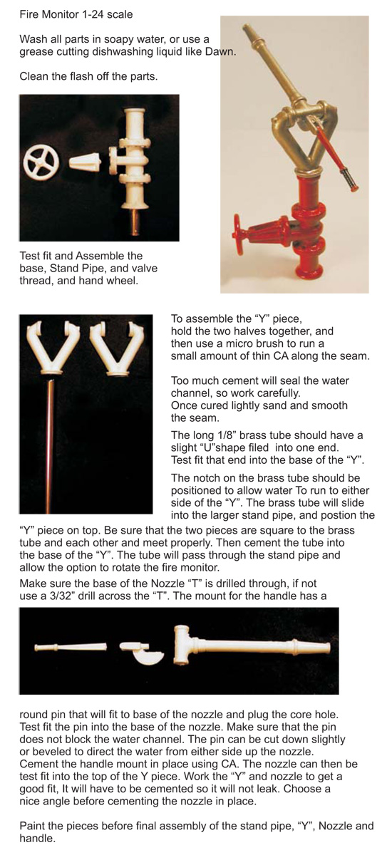 ![]() 1/24th Scale Supplied in kit form. Can be adapted into a working fire monitor. Dimensions: The height up to the top of the "heart" is 2-1/4" tall The nozzle length is about 1-3/4" long Click here to download instructions $19.95 |