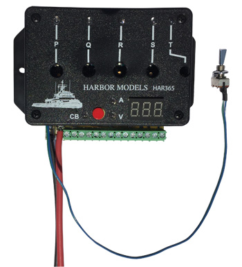 ![]() NOT IN PRODUCTION AT THIS TIME This new unit is full of new features to help power your model and solve many issues found in the past. Always know your battery level with a built in battery meter, easily review your model's power consumption with a built in amp meter (in real-time and max draw of your last run). This feature allows you calculate your battery requirements and runtime with ease. For use with 7.2V to 14V batteries. Break down your main voltage to five separate voltages using a dial on each output to, dial down to the tenth of volt. View the voltage on each output with a LED display panel. Unit can only lessen voltage not increase, so if you use 7.2 volts you can only get 7.2 volts out. The new main toggle switch included with the unit. No more digging into your hull to turn on switches! The entire model is now controlled with one main switch easily accessed from a convenient spot on your deck or hidden under a hatch. If you have an amperage spike over 20Amps the built in circuit breaker will pop to protect your speed controls and other accessories. If popped, simply turn off the main toggle and turn back on to reset. FEATURES: -Takes 7.2 to 14 Volts -Built in 25 Amp re-setable circuit breaker -low voltage cutoff to protect rare metal batteries -5 variable voltage outputs, max 1.7 amps -2 speed control outputs, max 20 amps -Battery voltage meter -Real-time and max amp meter -14" cord with main power on/off toggle -smaller size than the previous version Dimensions: Width: 4 1/4" with mounting tabs: 5 1/4" Depth: 3 1/2" Height: 1 1/2" DOWNLOAD INSTRUCTION SHEET ![]() ![]() |
