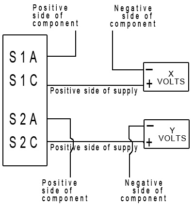 Activation of this switch will power up both outputs at the same time.