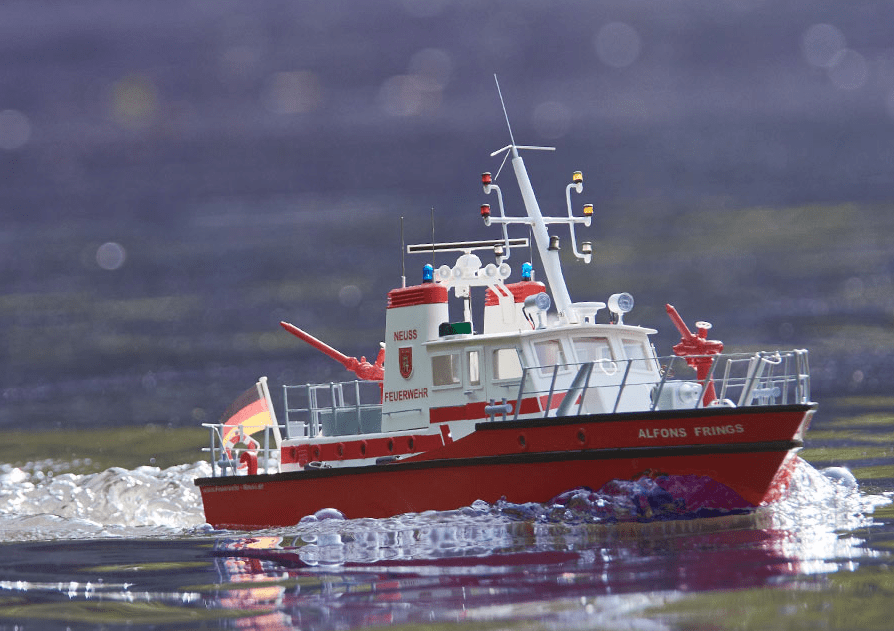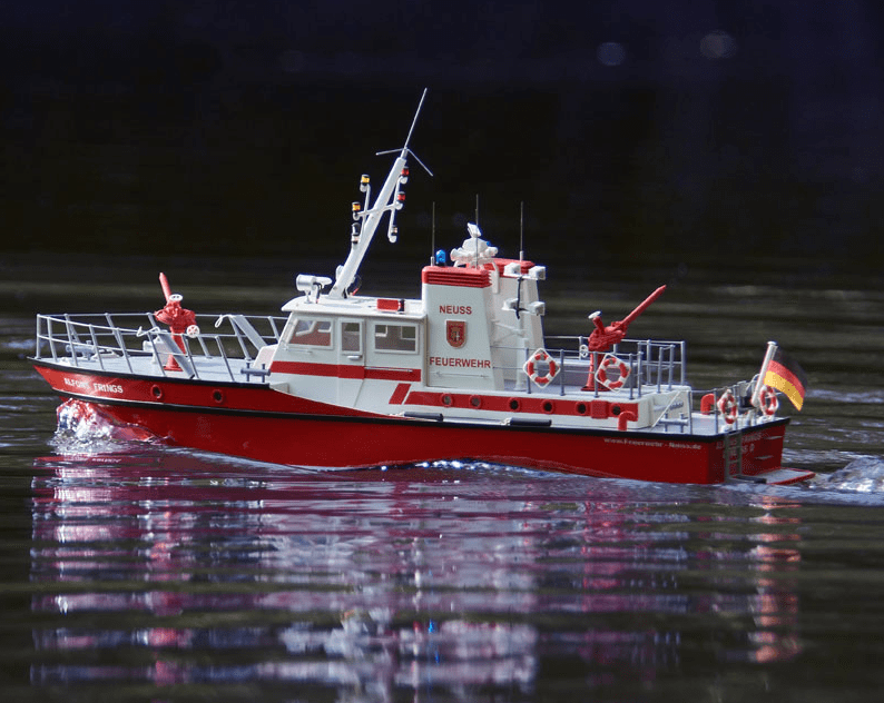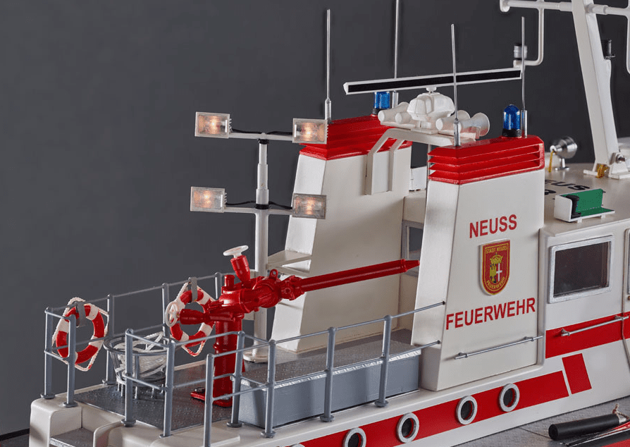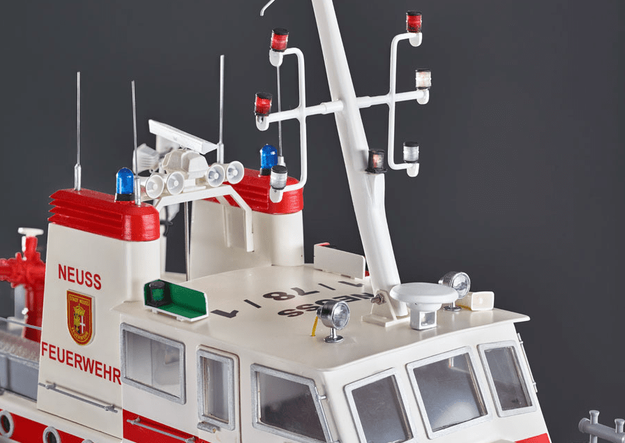 The FLB-1 is a model of a fire-fighting boat stationed in Neuss. It was put into service in 1983 and has been in service on the Rhine ever since. The ship is used for fire protection and rescue services. Due to its relatively compact construction, strong motorization and the many details and functional possibilities, it has become a beautiful model that is not difficult to build and at the same time allows many special functions.