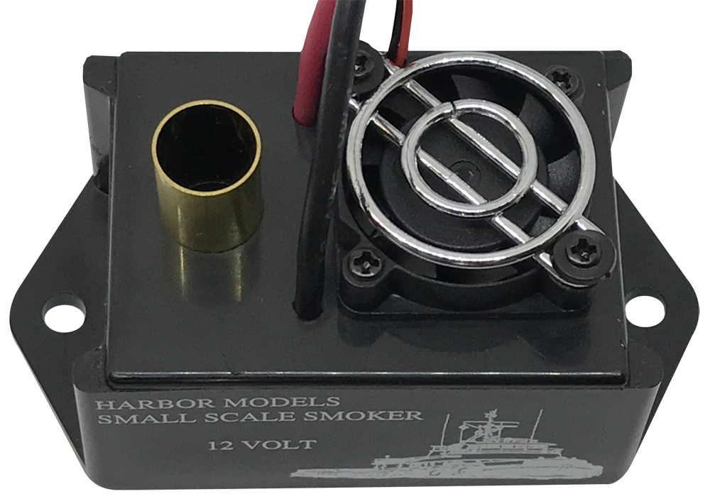 The Harbor Models 6V Small-Scale-Smoker is a great way to add that extra touch of realism to your models. The unit features a brushless bearing fan for efficient and quiet operation, low power consumption, extended run time, compact size and variable output in relation to your motor. Includes one 2oz bottle of smoke fluid. One bottle will last up to 12 hours of smoke with a dipstick to check fluid level. Dimensions: 2-1/8" L (2-7/8" with mounting tabs) x 1-1/2" W x 1-1/2" H Weight: 1.4oz. when filled with fluid Run time: ~3-1/2 hours on 1/2oz. of fluid Draw: ~1.2 amps at full throttle Voltage: 6 Volt (In order to accomplish the longer run times and lower power consumption this 6 volt limit is important. If you have any concern that you may be providing your smoke generator more than 6 volts please use a voltage regulator like the one found here: Voltage Regulator You can also find it below in the accessories list.) Warranty: All our smoke generators are tested for perfect functionality before shipping. For more information on warranty please download and read the instruction sheet found below. ***FOR CUSTOMERS PLANNING ON USING IN A TRAIN OR OTHER APPLICATION*** You can use this unit in a train but make sure of the following first: -You must have a constant power source between 5.5 and 6V -Make sure to have enough room to install the unit, there needs to be about 1.5-3 inches of room above the fan in order for it to draw the required air flow -The cavity or area used to install the unit must have air flow, it CANNOT be sealed as the smoker needs air to push through the unit to function DOWNLOAD INSTRUCTION SHEET Installation Diagrams: Fixed Output (hooked directly to battery) Proportional Output (hooked to speed control) FAQ Sheet Download For more pictures, installation tips and forum talk about our line of Smoke Generators visit the Facebook page dedicated to smoker users here: Facebook Smoke Generator Page WARNING The smoke fluid provided with this unit can have health effects if used for extended periods of time in unventilated areas for more information please download the Material Safety Data Sheet below: MSDS SHEET DOWNLOAD